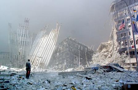 米ニューヨークの世界貿易センターのビル倒壊現場(2001年9月11日撮影)。約3000人の犠牲者を出した米同時テロから9年となった11日、各地で追悼式典が行われ、遺族らが犠牲者の冥福を祈る。