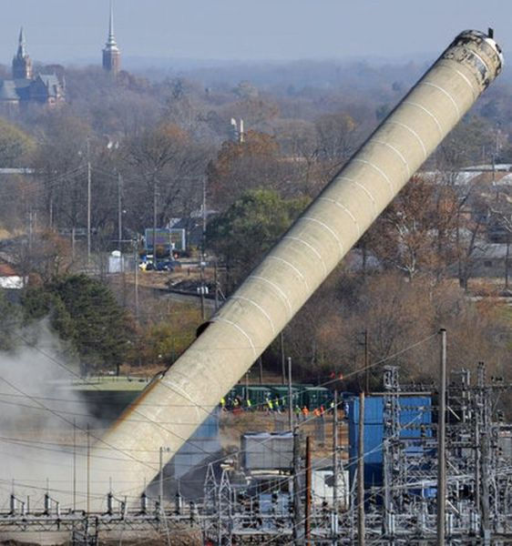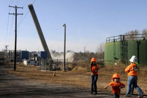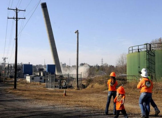 煙突爆破解体失敗!!子どもたちがあわや下敷きに(米オハイオ)