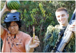 現代版ウィリアム・テルの場合には、50口径という弾丸を使い、ライフル銃で頭上のスイカを狙撃するという、かなり過激なバージョンになっていたんだ。