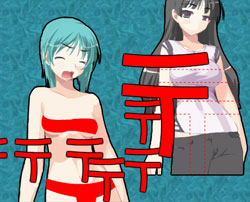 郵便マーク「〒」を女性の体にはめ込むと、あらやだ服が脱げちゃう脱げちゃうとかいうタイプの脱衣系ゲームです。操作は方向キーで。制限時間内にすべての女の子と〒マークをドッキングさせましょう。