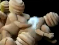蜂の巣状のヘッドマスクと、ふくよかな巨乳を身に纏い、たわむれあうWTFな女性たちのパーティー会場の舞台裏映像はこちらから。