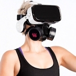 VRヘッドセットと一緒に、香り入りカートリッジの入ったガスマスクのようなものを装着し、香りカートリッジが加熱されると香りがマスクを通してポンプ輸送され、映像に合わせた香り・匂いが体験できるようになるとのこと。